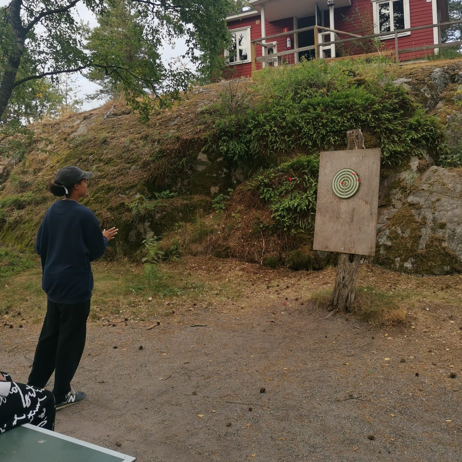 Alldeles bredvid pilkastning finns utepingisbord som gör att då man tröttnar på pilkastning så kan man istället utmana sina vänner till en pingismatch utan att behöva flytta på sig.