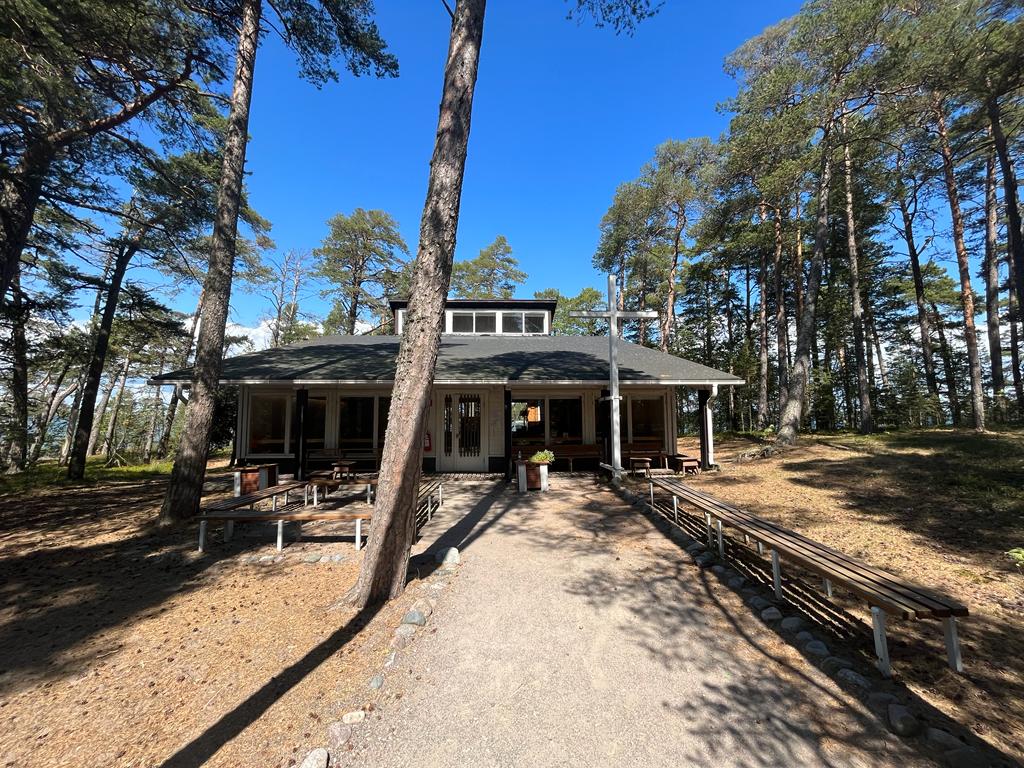 Om du tar höger stig från Prästis, leder den dig till volleybollplanen och bastun. På vänster sida om Prästis finns Kapellet. Här firas mässa varje onsdag kväll och söndag dag. Om du går bakom Kapellet, kommer du till Kapelludden med sin fina sandstrand.